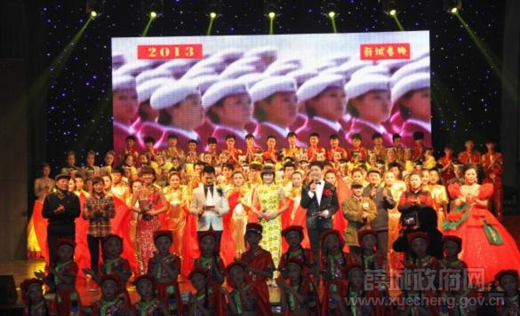2月5日晚,薛国大酒店明星俱乐部内外华灯放彩、声乐飞扬,由区委、区政府主办,区委宣传部、区文广新局等承办,枣庄市顺兴水泥有限公司总冠名,以“金蛇献瑞•幸福薛城”为主题的2013年薛城区迎春文艺联欢晚会在这里隆重举行。区委、区人大、区政府、区政协、市文广新局分管领导出席了晚会。区直各部门、各镇街党政主要负责同志,以及部分企业负责人和社会各界群众共500余人观看了演出。