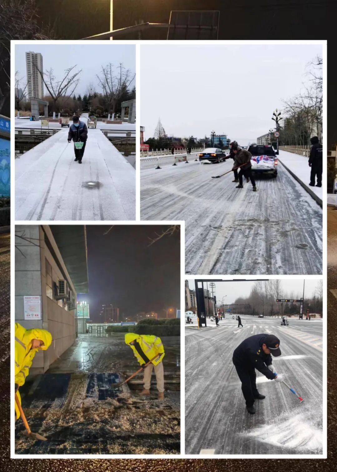 为最大程度保障群众出行安全,物环集团迅速集结环卫工人,根据城区各主次干道的路面情况,采取人工清理与抛洒融雪剂相结合的方式进行分片、分段作业,重点是桥梁、坡道区域。他们忙碌的身影,成为这座城市里一道亮丽的风景线。截至目前,物环集团共出动人员700余人,抛洒融雪剂85吨。
