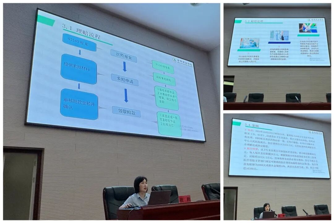 培训邀请区中华职业教育社专家进行专题授课,授课内容涵盖医疗责任险的保障范围、理赔流程、免责条款及投保要点等内容,并结合实际案例剖析常见医疗风险与防范措施,指导大家如何利用保险工具化解经济赔偿风险。在互动答疑环节,与会人员就日常工作中遇到的保险困惑以及政策执行中的问题踊跃提问,专家一一给予了细致专业的解答,现场气氛热烈。乡村医生们表示,通过培训提升了对医疗纠纷的处理能力,增强了依法执业、安全行医的信心。