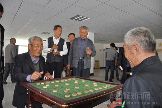 在东姚社区活动中心棋牌室,数位白发老人玩得不亦乐乎:有的在聚精会神地下象棋,有的在玩麻将牌,还有的在玩扑克牌。没有位置的老人,索性站在象棋桌前看起了白发老人的博弈。