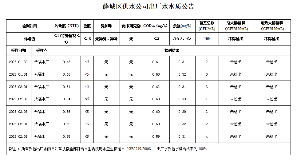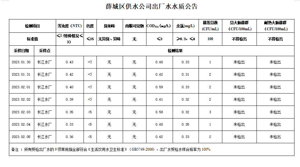 • 标  题:出厂水水质公告2023.01.30-2023.02.05