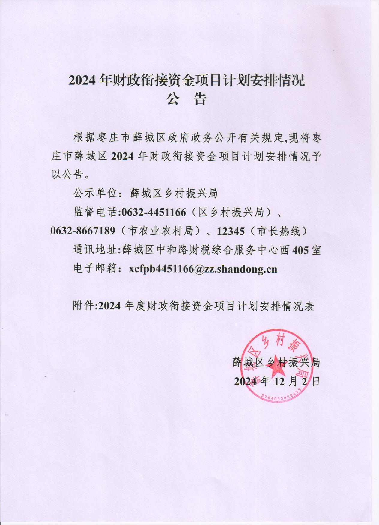 • 标  题:2024年财政衔接资金项目计划安排情况公告