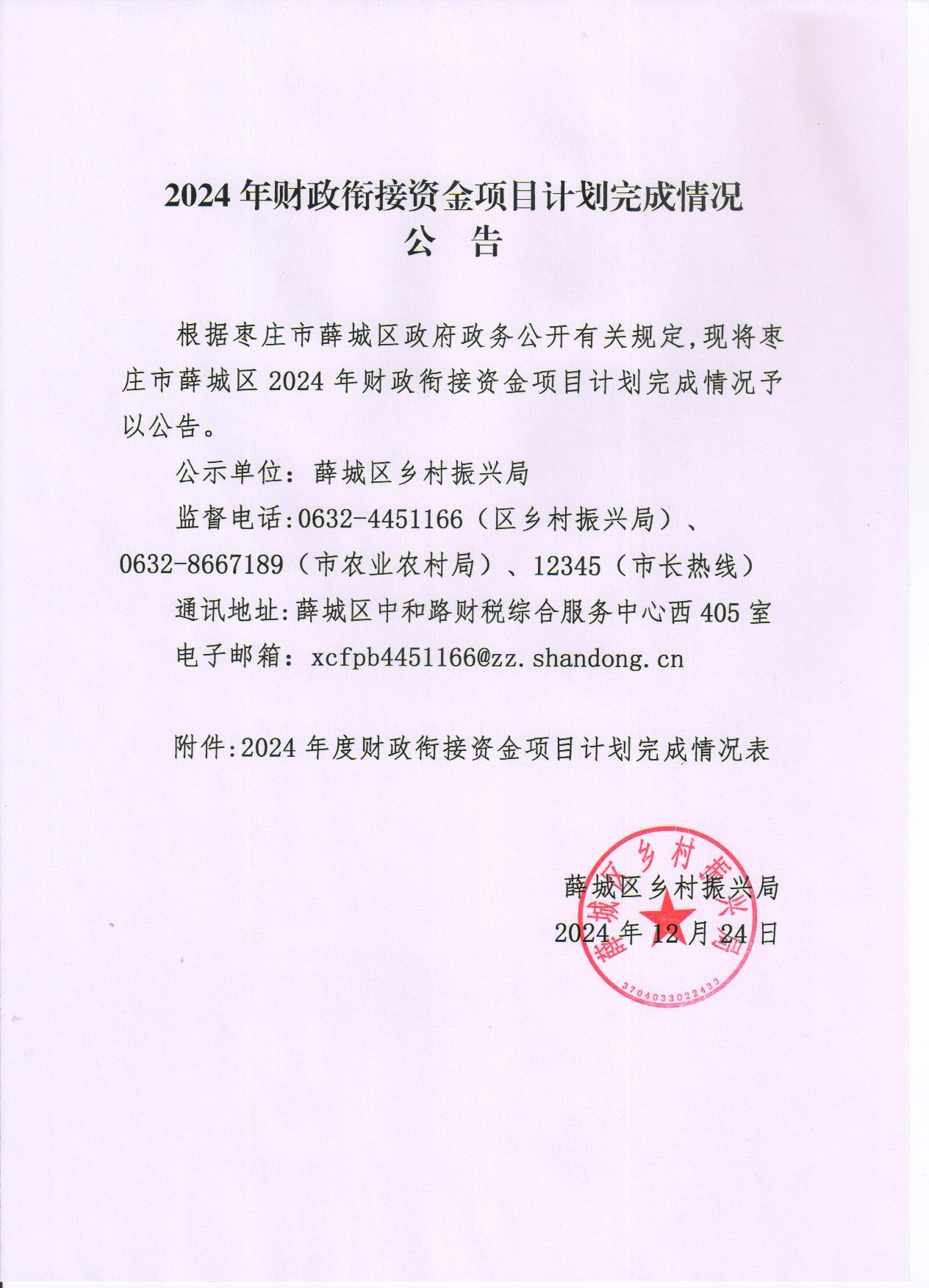 • 标  题:2024年财政衔接资金项目计划完成情况公告
