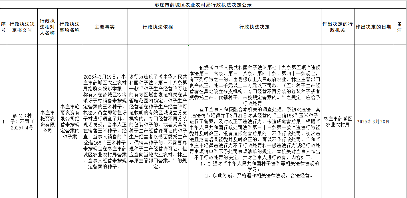 • 标  题:枣庄市薛城区农业农村局行政执法决定公示