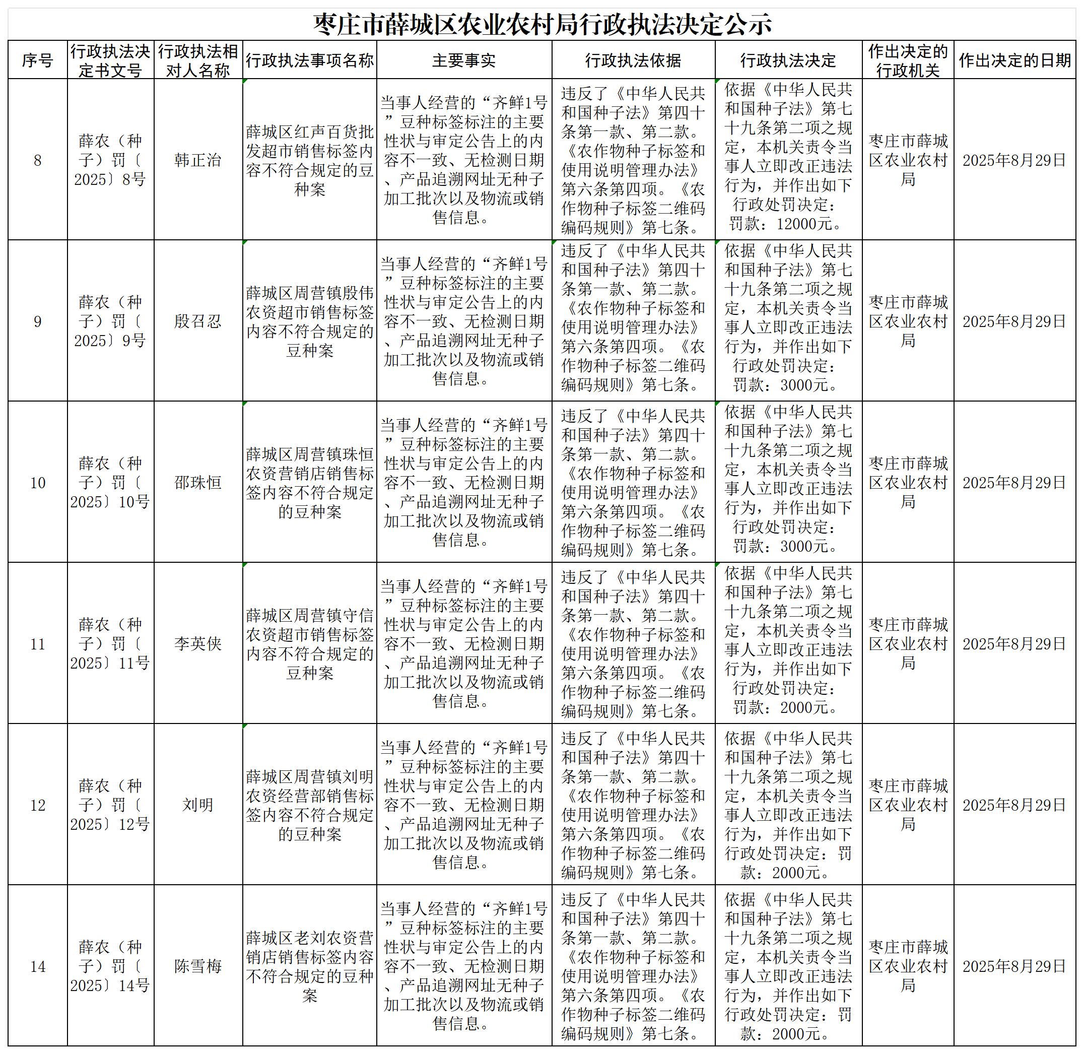 • 标  题:枣庄市薛城区农业农村局行政执法决定公示