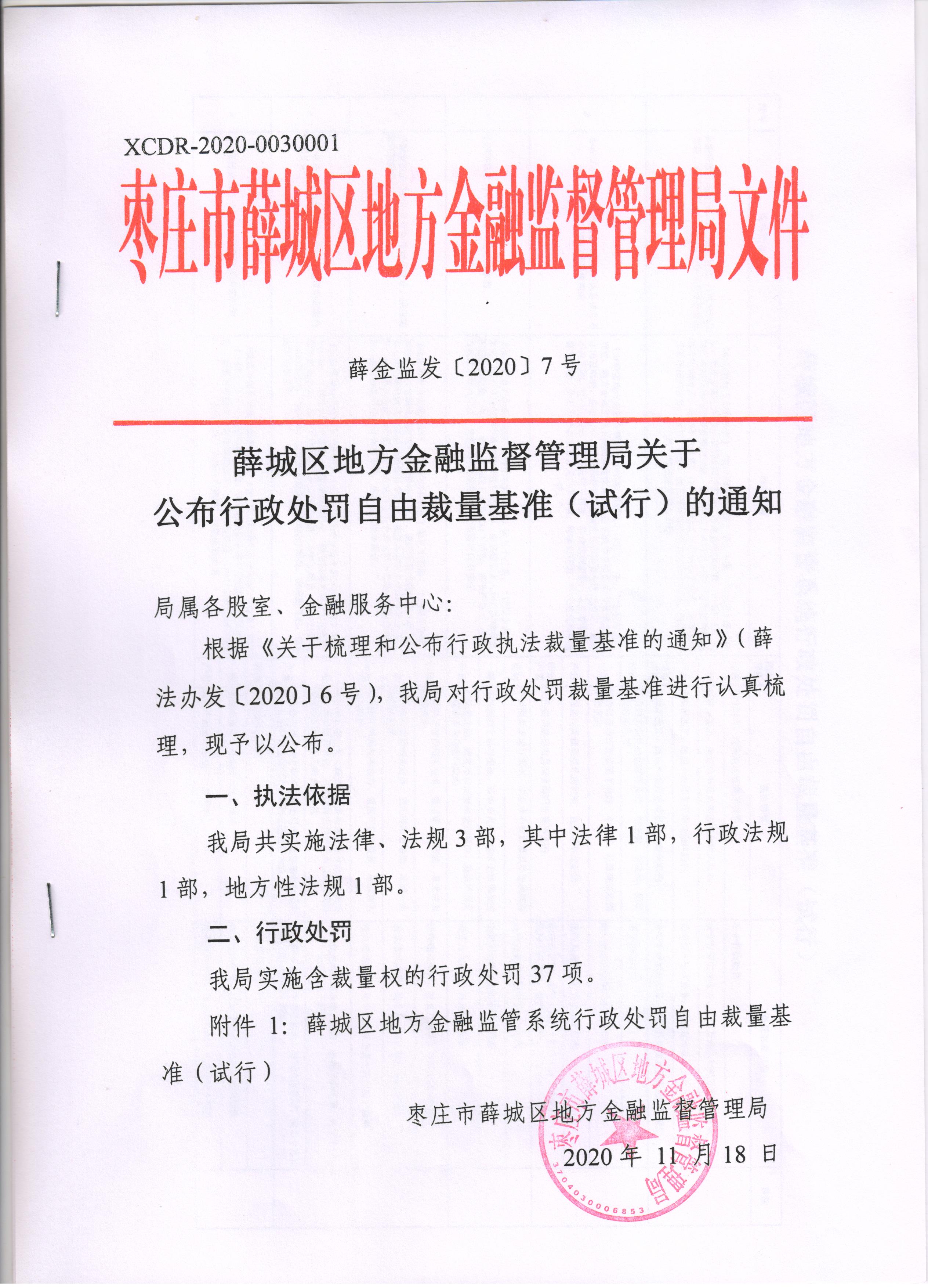 薛城区地方金融监督管理局关于公布行政处罚自由裁量基准(试行)的通知.jpg