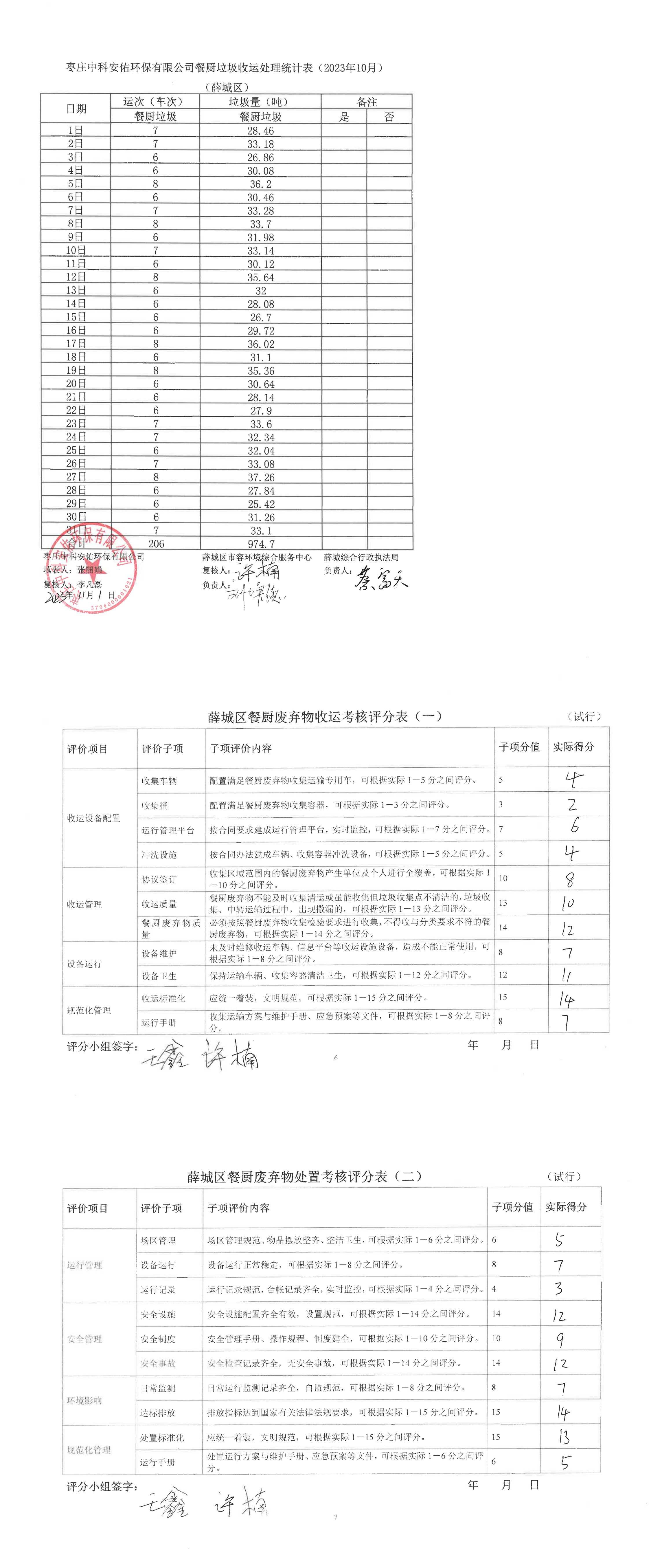 • 标  题:枣庄中科安佑环保有限公司餐厨垃圾收运处理统计表