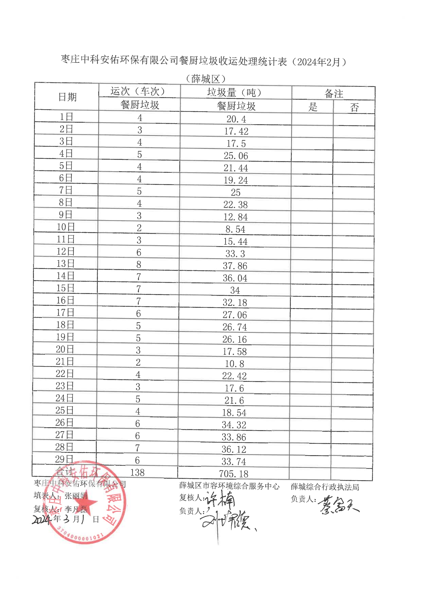 • 标  题:枣庄中科安佑环保有限公司餐厨垃圾收运处理统计表