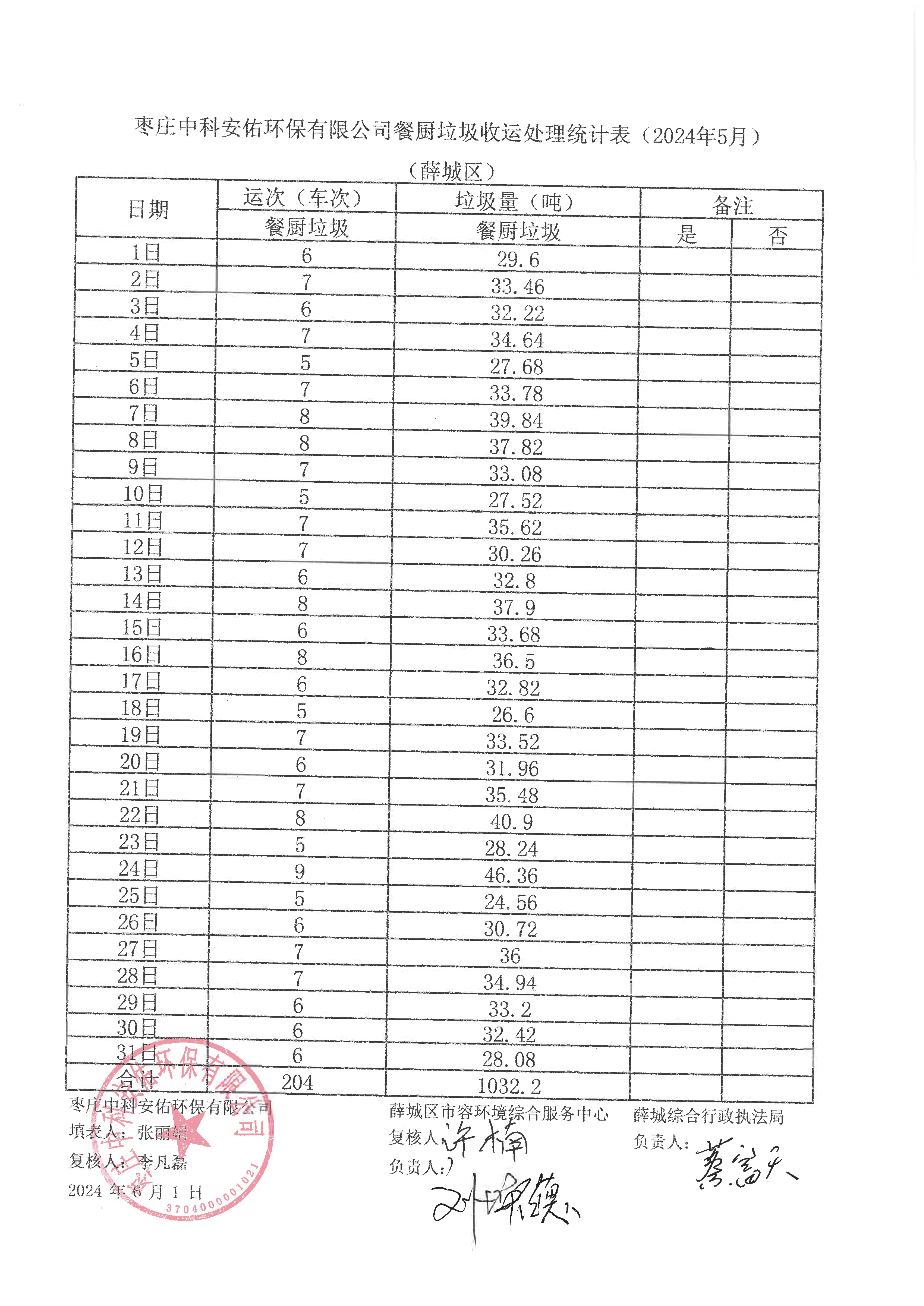 • 标  题:枣庄中科安佑环保有限公司餐厨垃圾收运处理统计表
