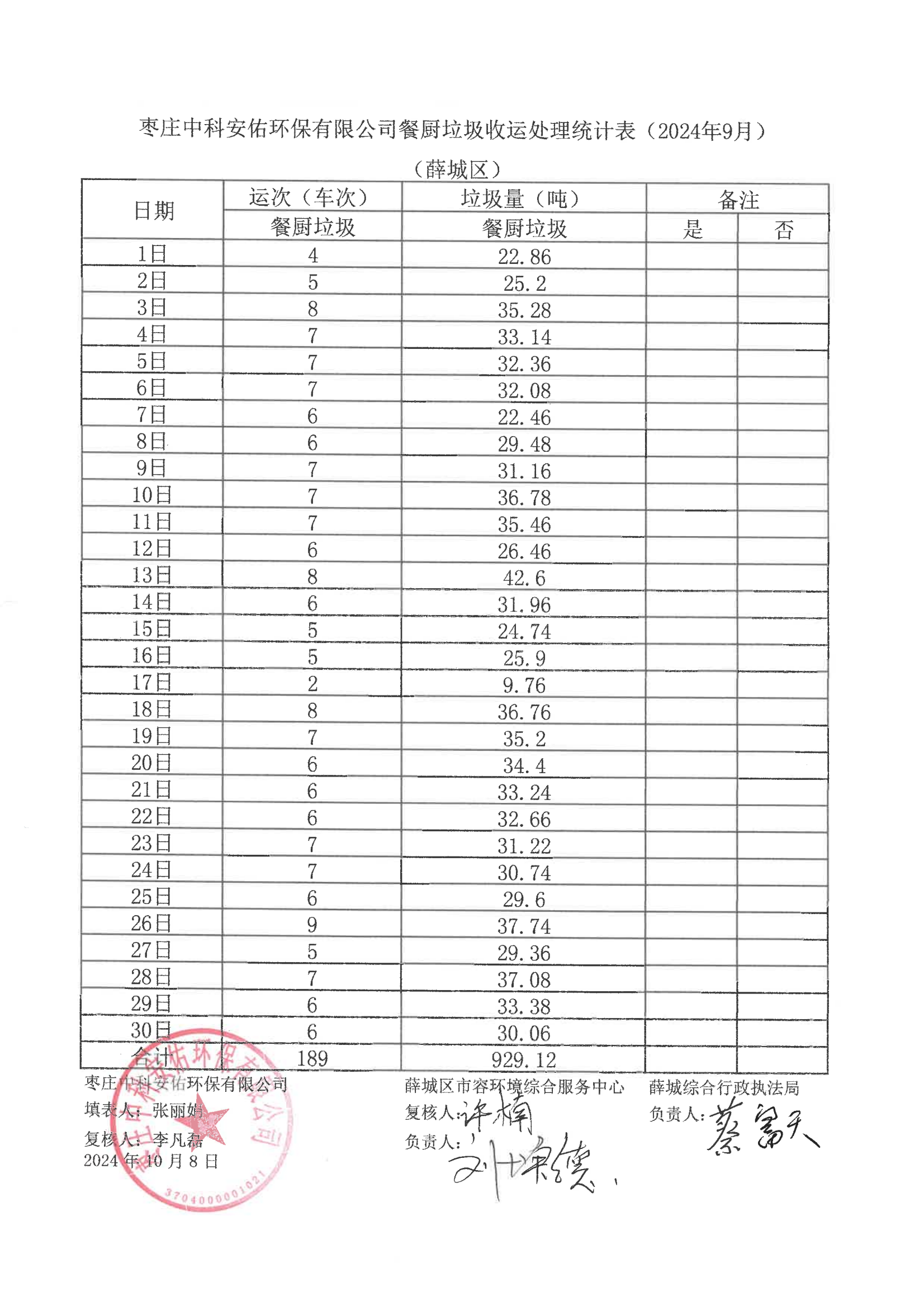 • 标  题:枣庄中科安佑环保有限公司餐厨垃圾收运处理统计表
