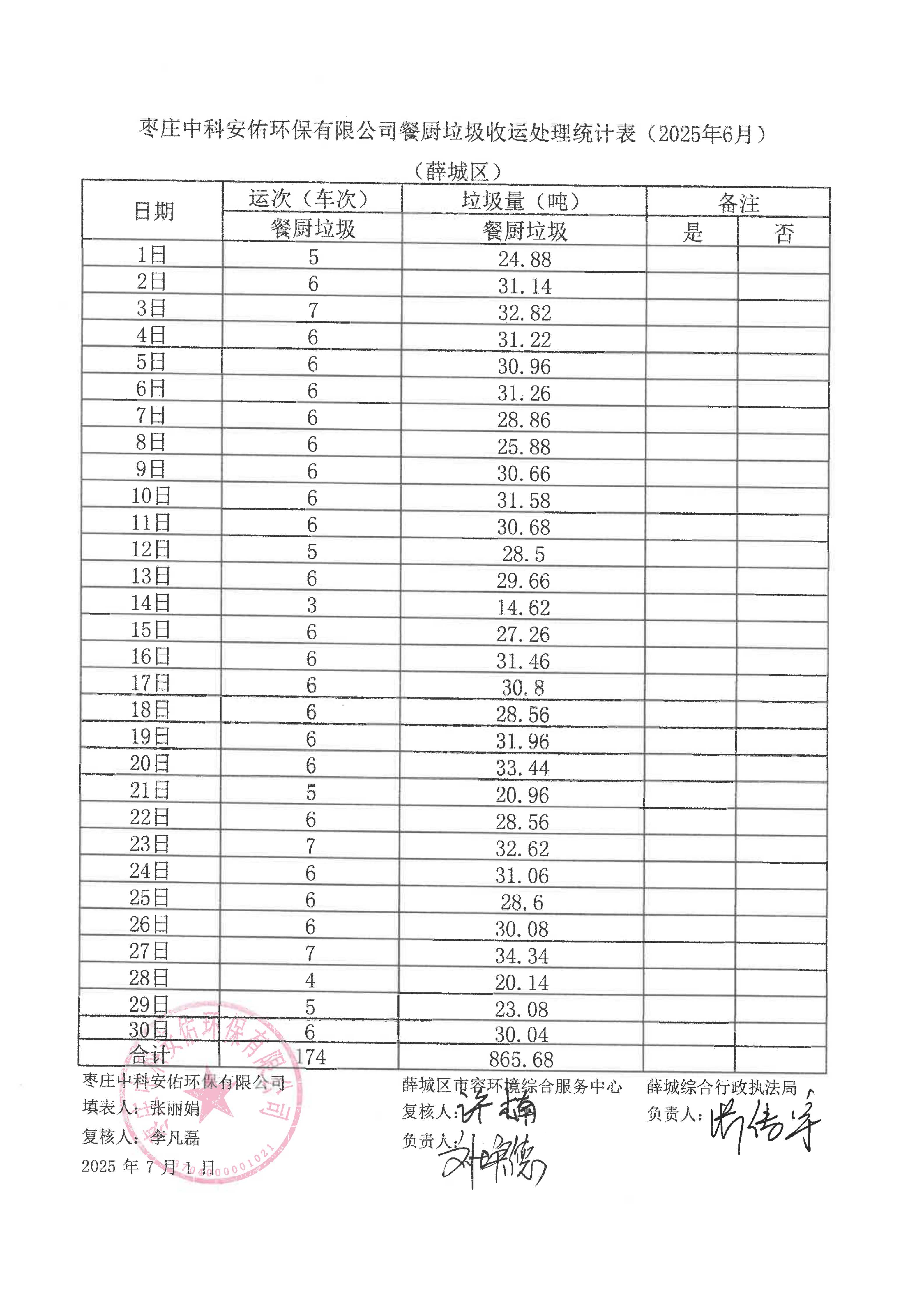 • 标  题:枣庄中科安佑环保有限公司餐厨垃圾收运处理统计表