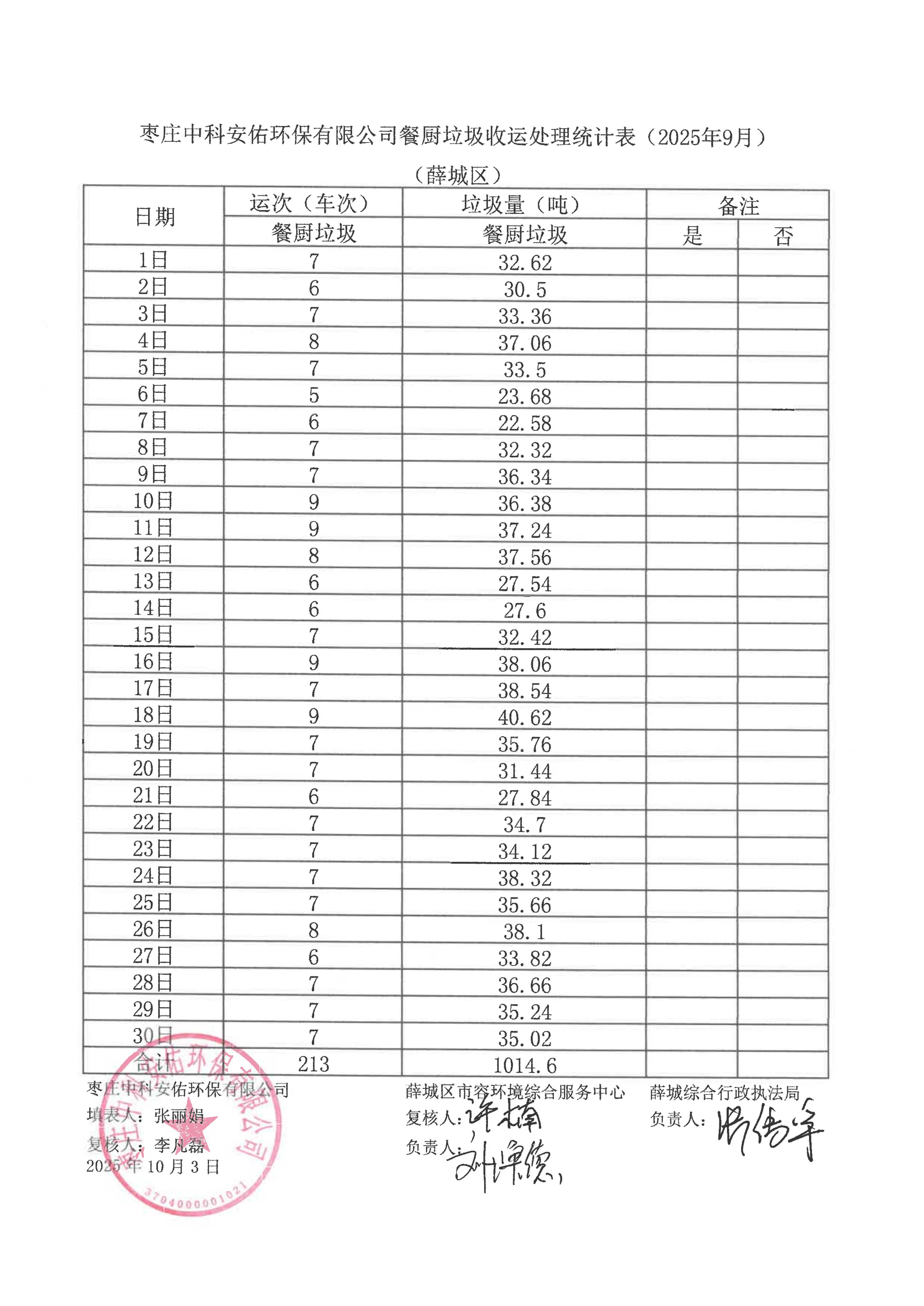 • 标  题:枣庄中科安佑环保有限公司餐厨垃圾收运处理统计表