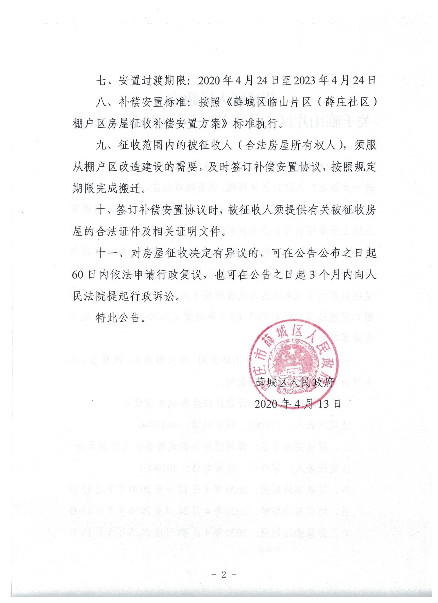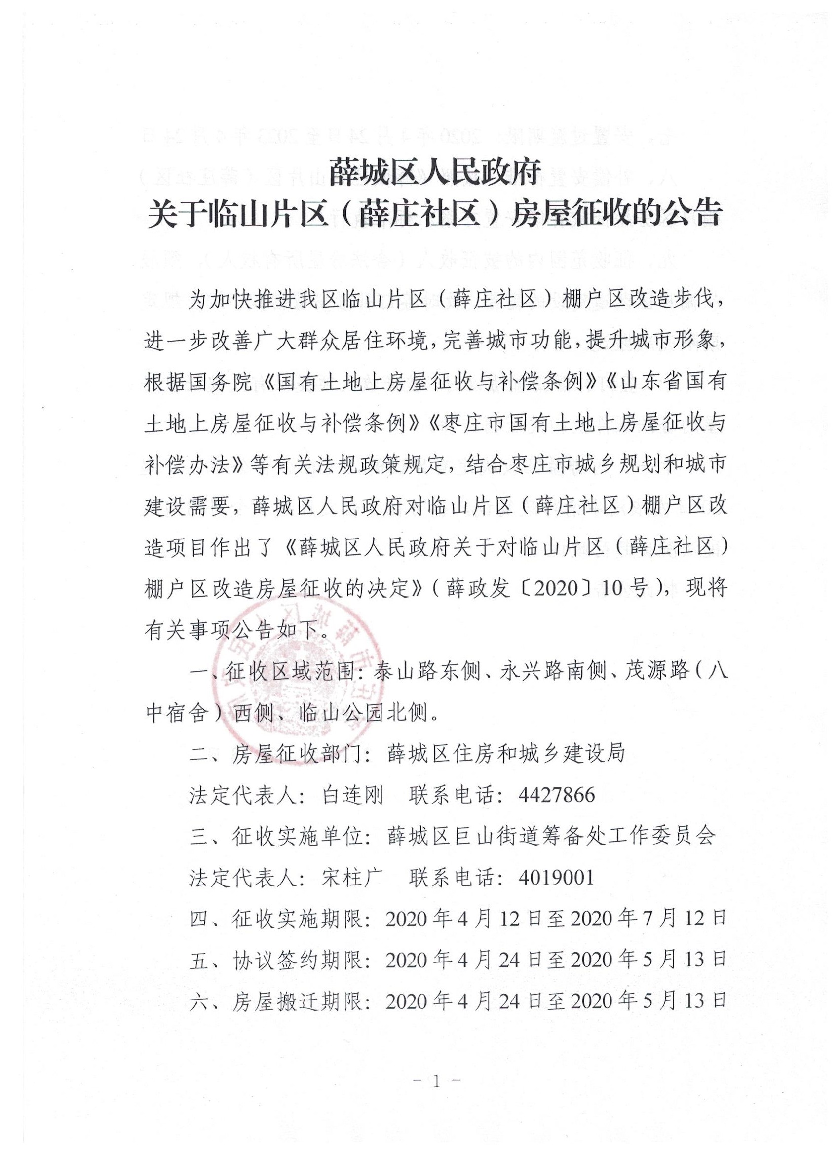 • 标  题:关于临山片区(薛庄社区)房屋征收的公告