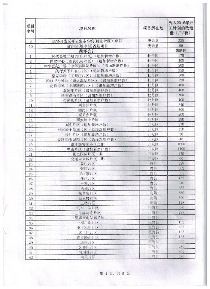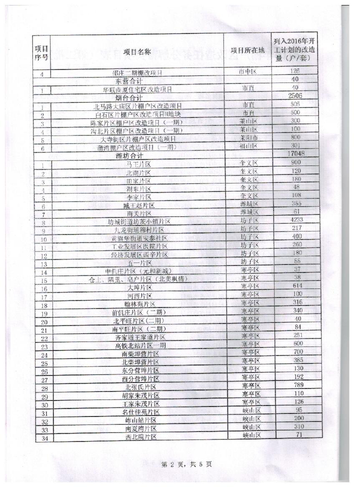 鲁建住字【2016】1号 关于公布2016年棚户区改造任务分解落实项目第二批的通知