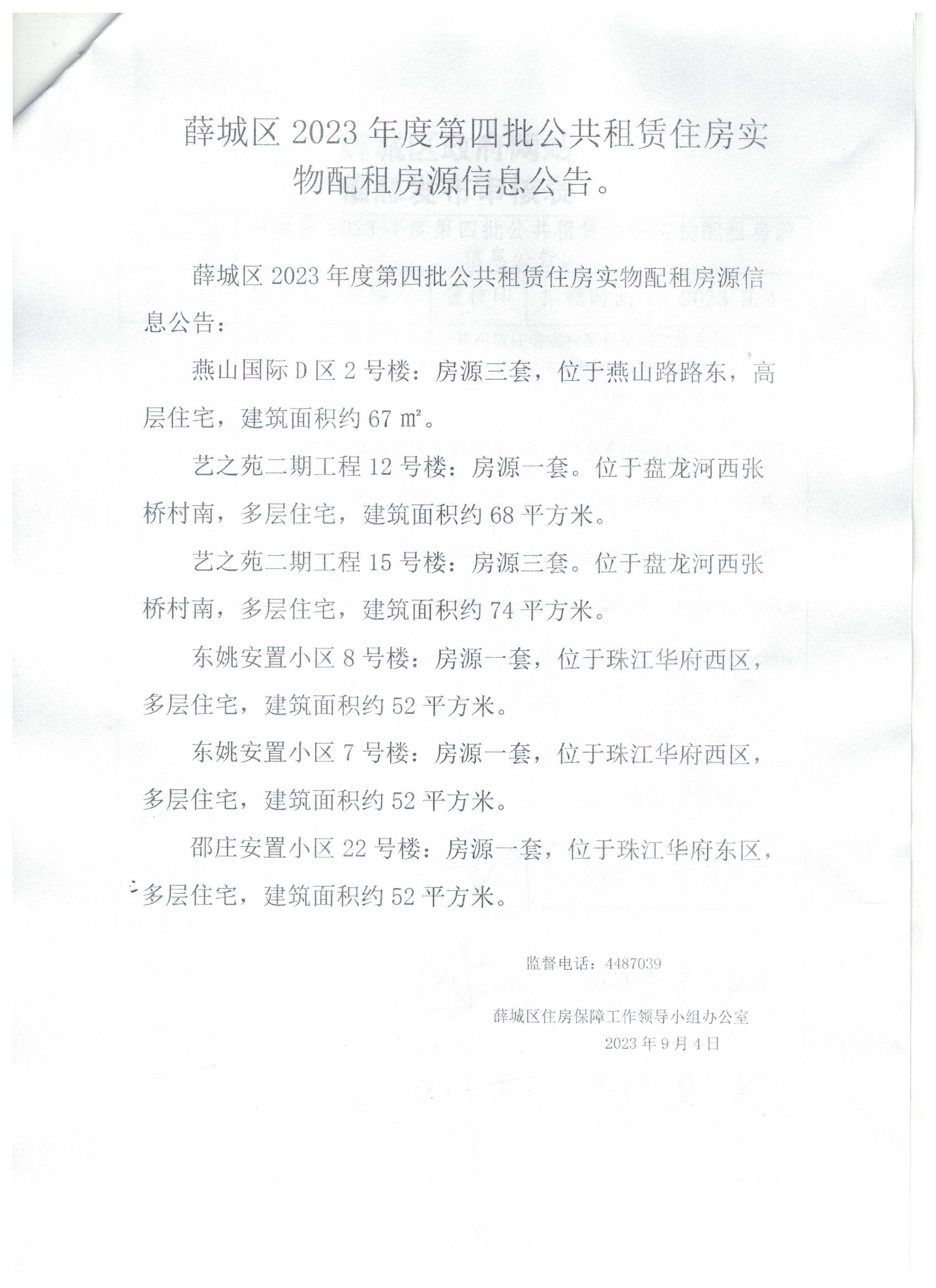 - 标 题:薛城区2023年度第四批公共租赁住房实物配租房源信息公示