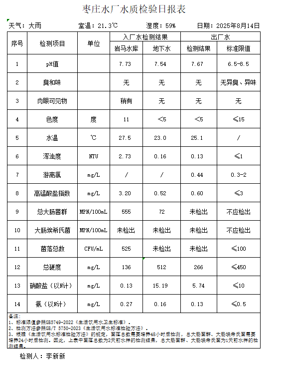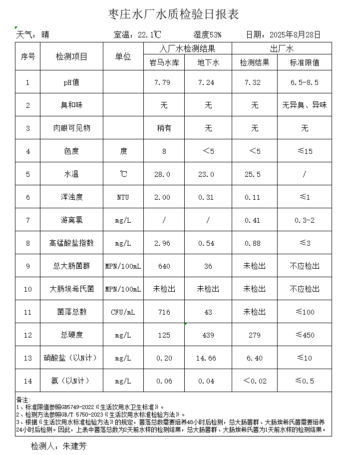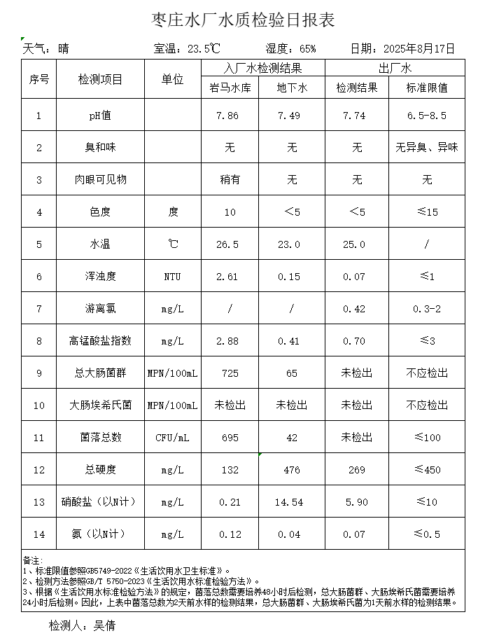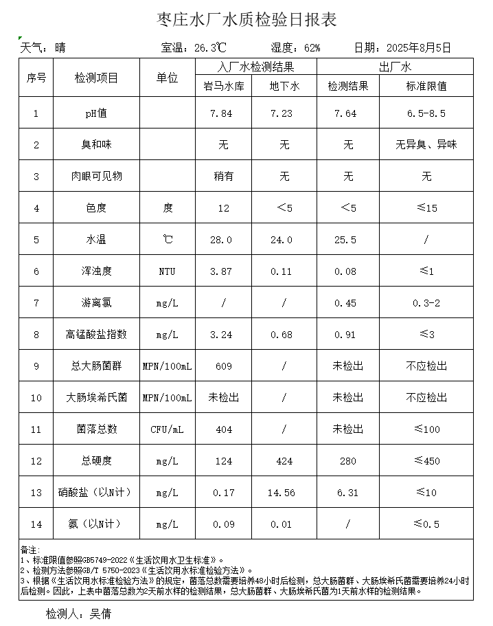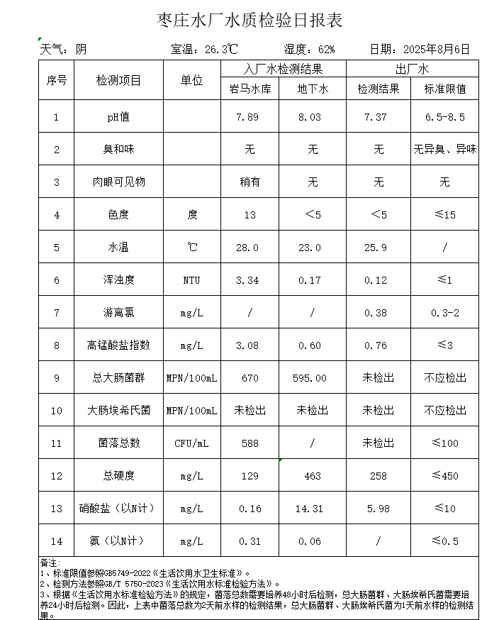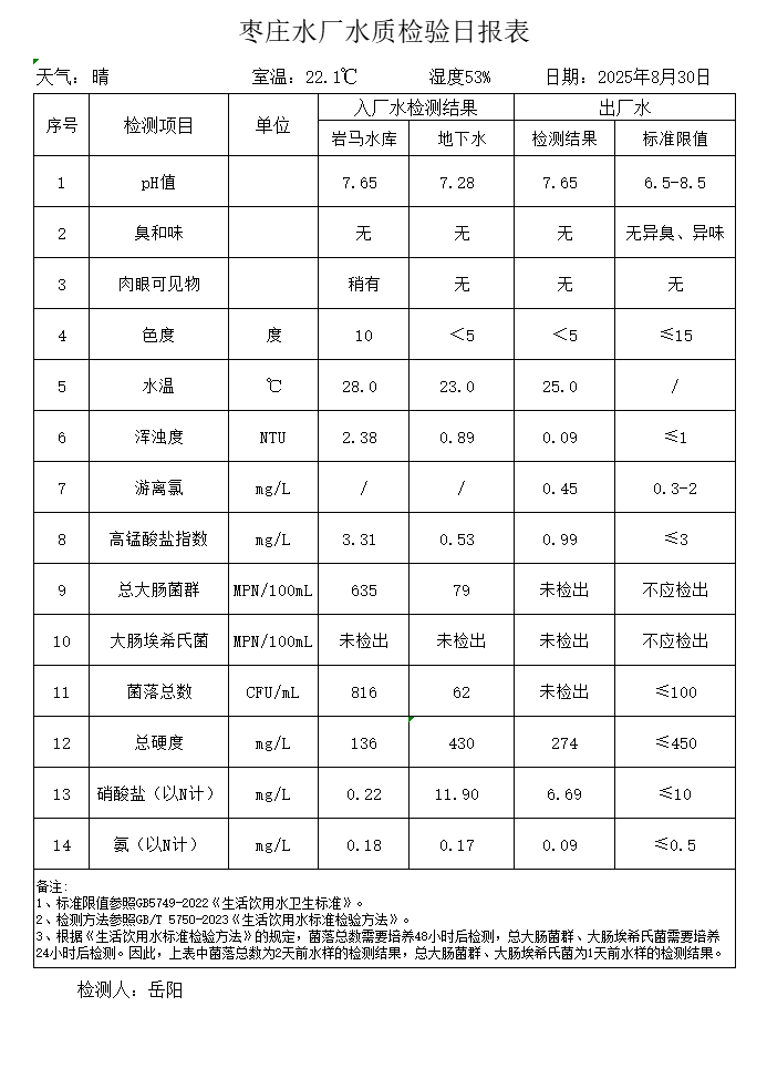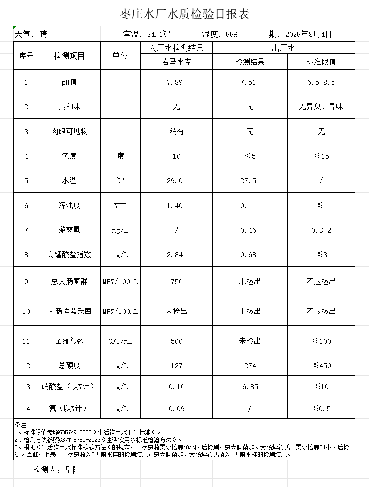 出厂水水质公告2025.08.04-2025.08.30