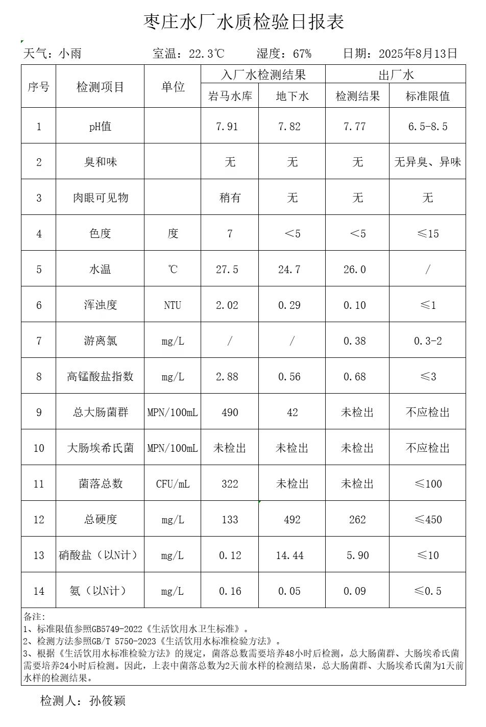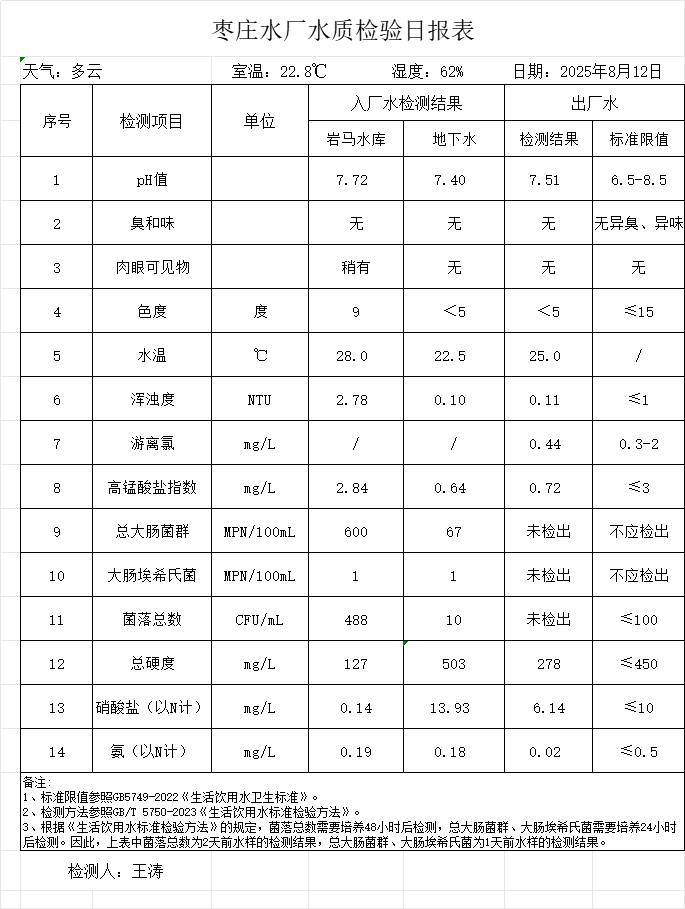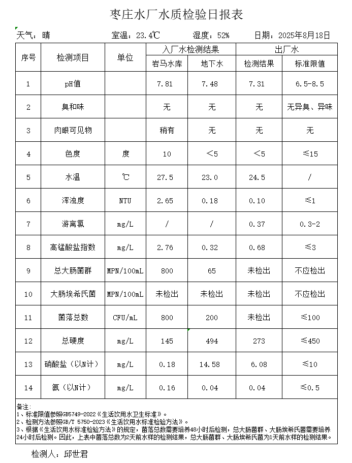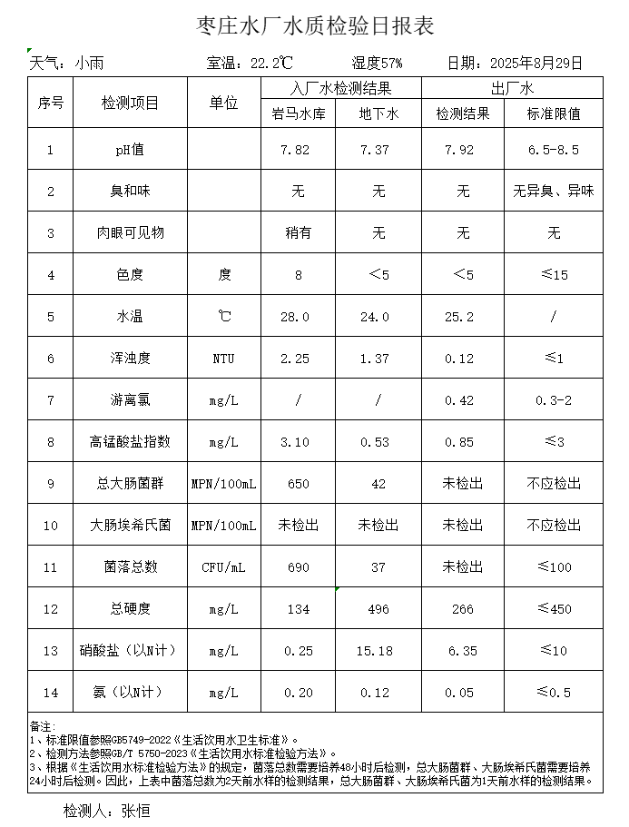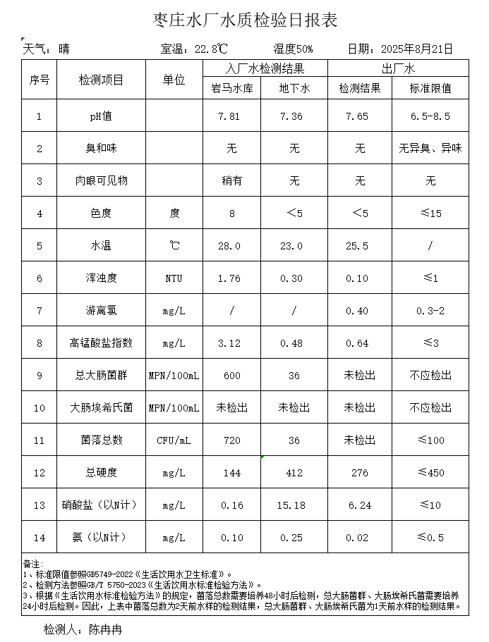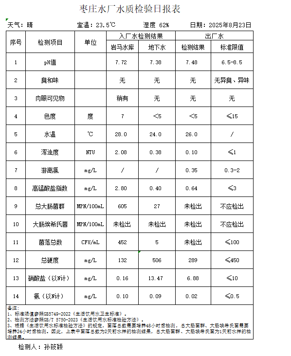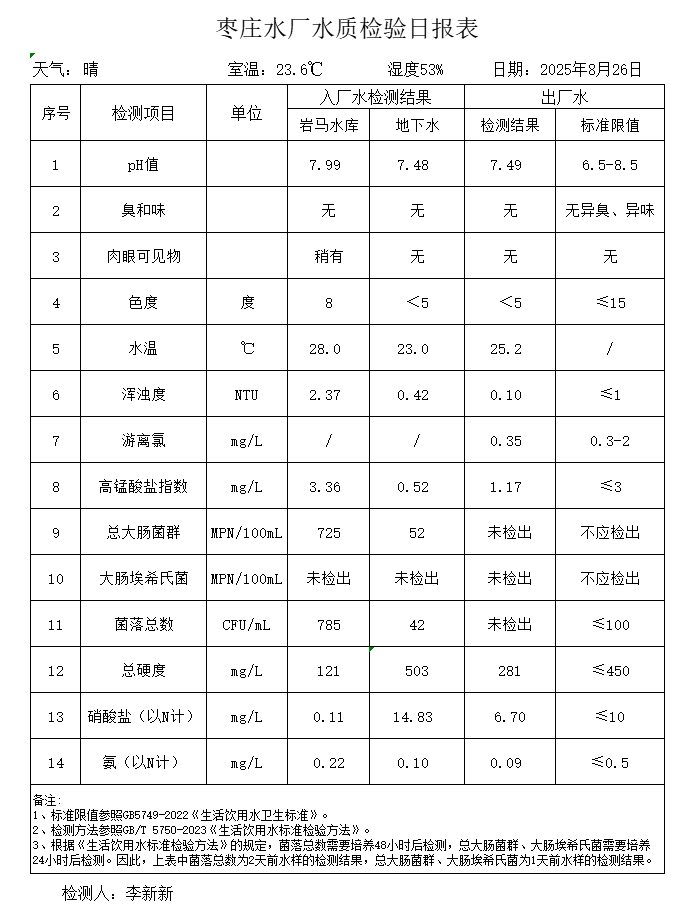 出厂水水质公告2025.08.04-2025.08.30