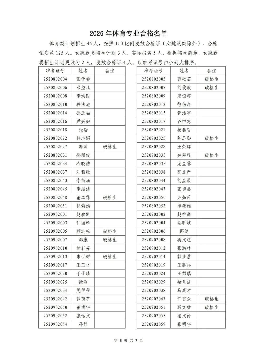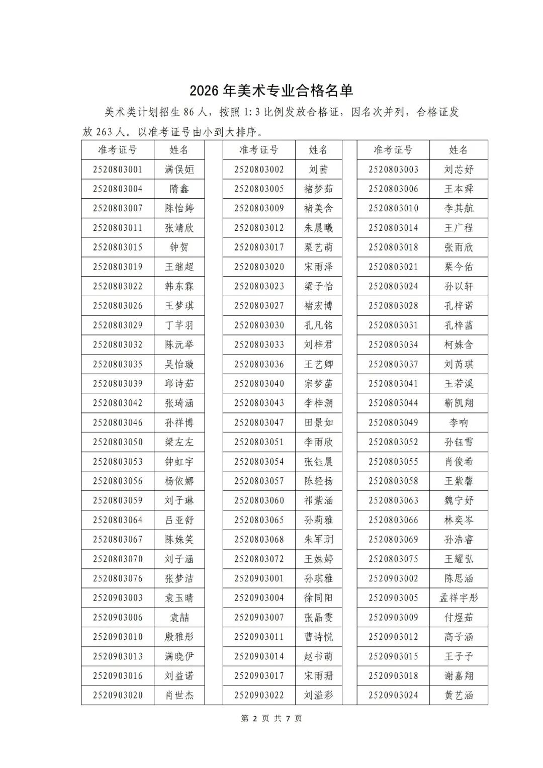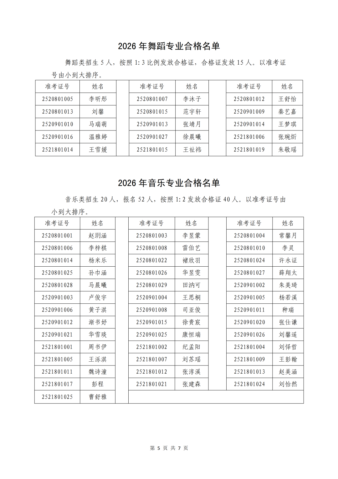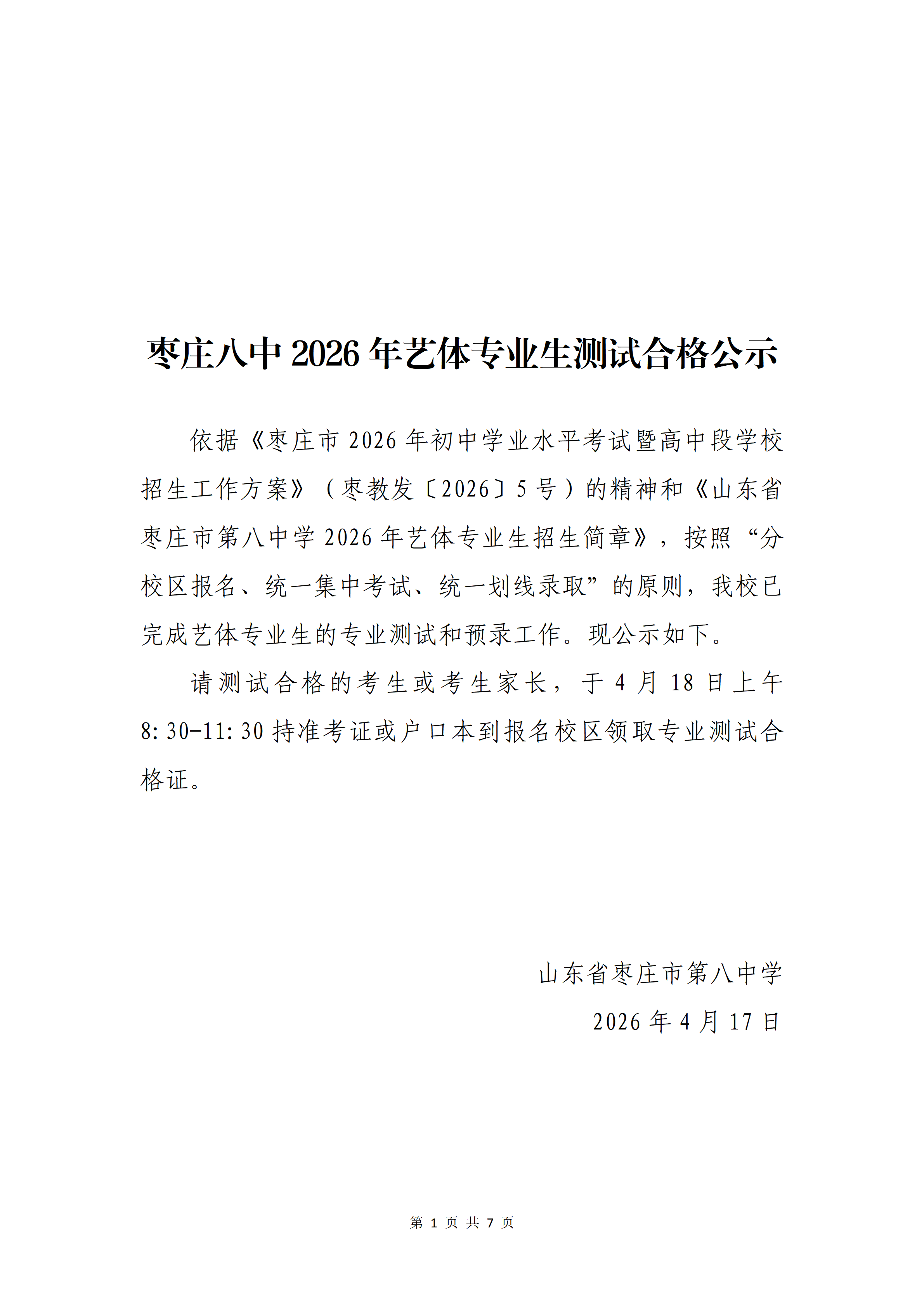 【录取信息】枣庄八中2026年艺体专业生测试合格公示