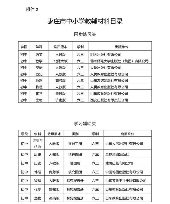 为规范做好中小学教学用书选用和教辅材料征订等工作,根据《山东省教育厅办公室关于做好中小学教学用书使用工作的通知》等要求,按照"一科一辅"原则,市教育局按照程序从《山东省中小学教辅材料评议目录》中,为全市中小学校推荐了相关教辅材料供学生选用,学校按照自愿购买的原则组织学生从市选目录中选用。