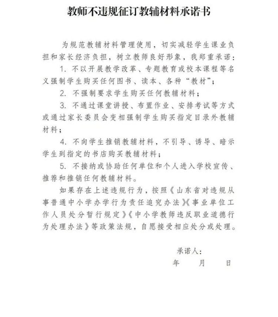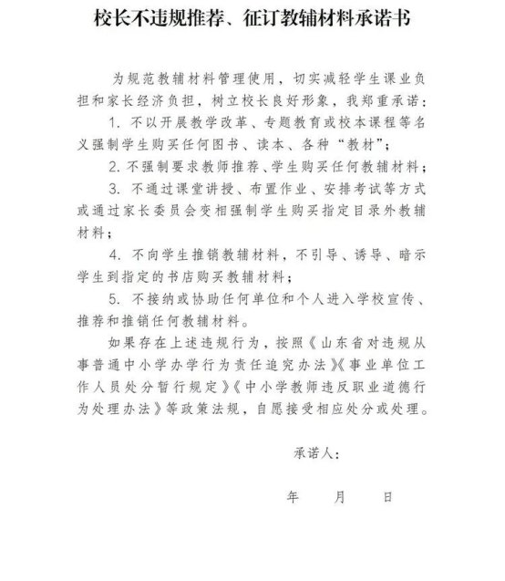 “两承诺”:即学校校长和所有任课教师承诺不在学校选用目录之外推荐教辅材料(附件4和附件5);
