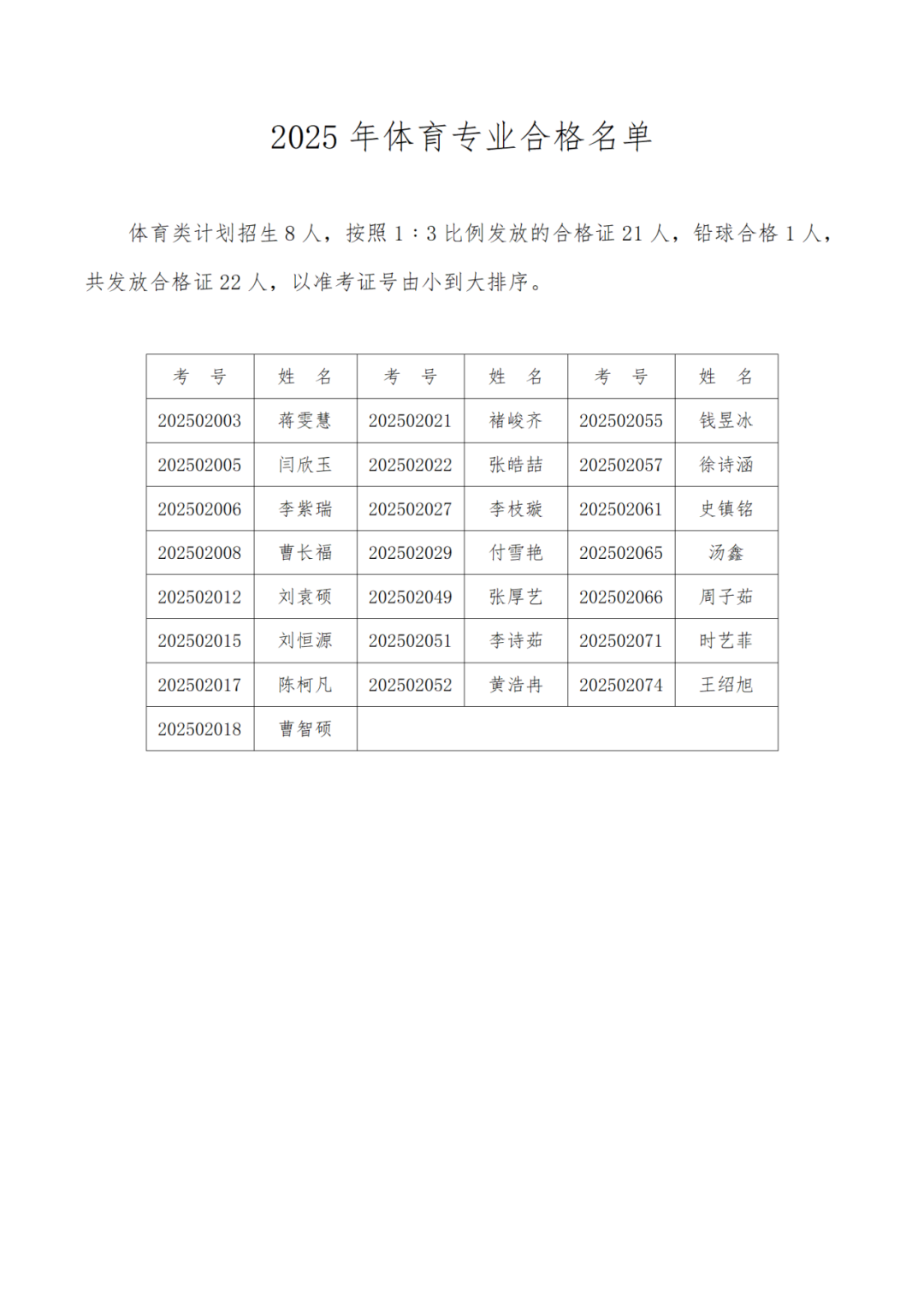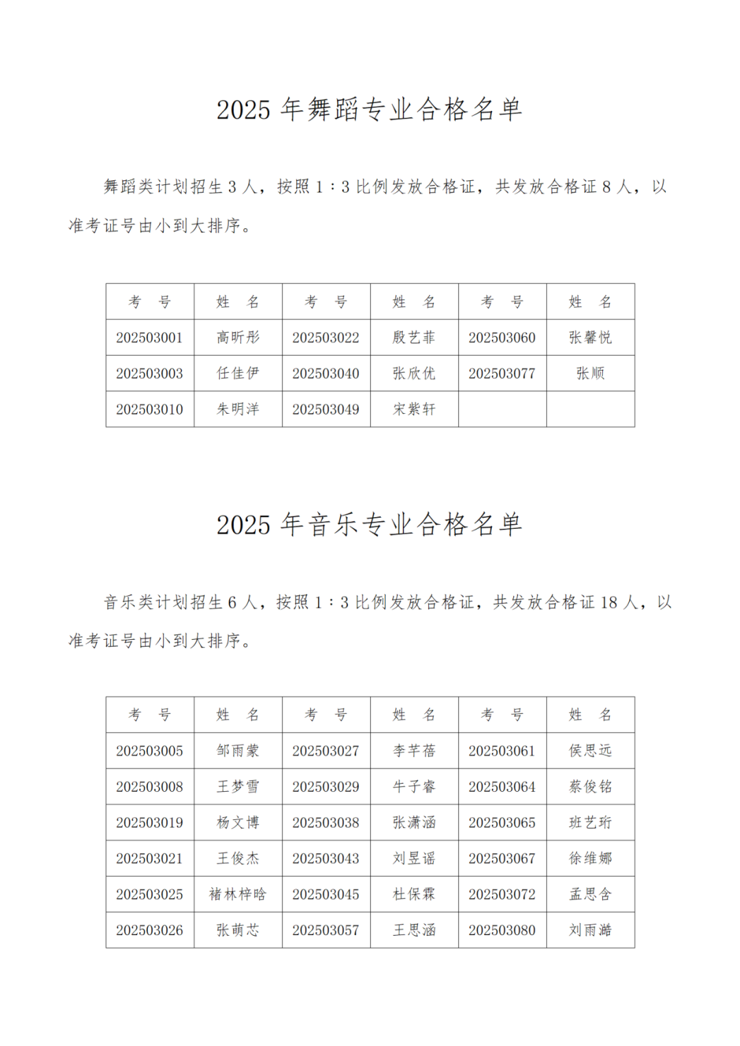【录取信息】枣庄市第五中学(高中部)2025年艺体生专业测试合格公示